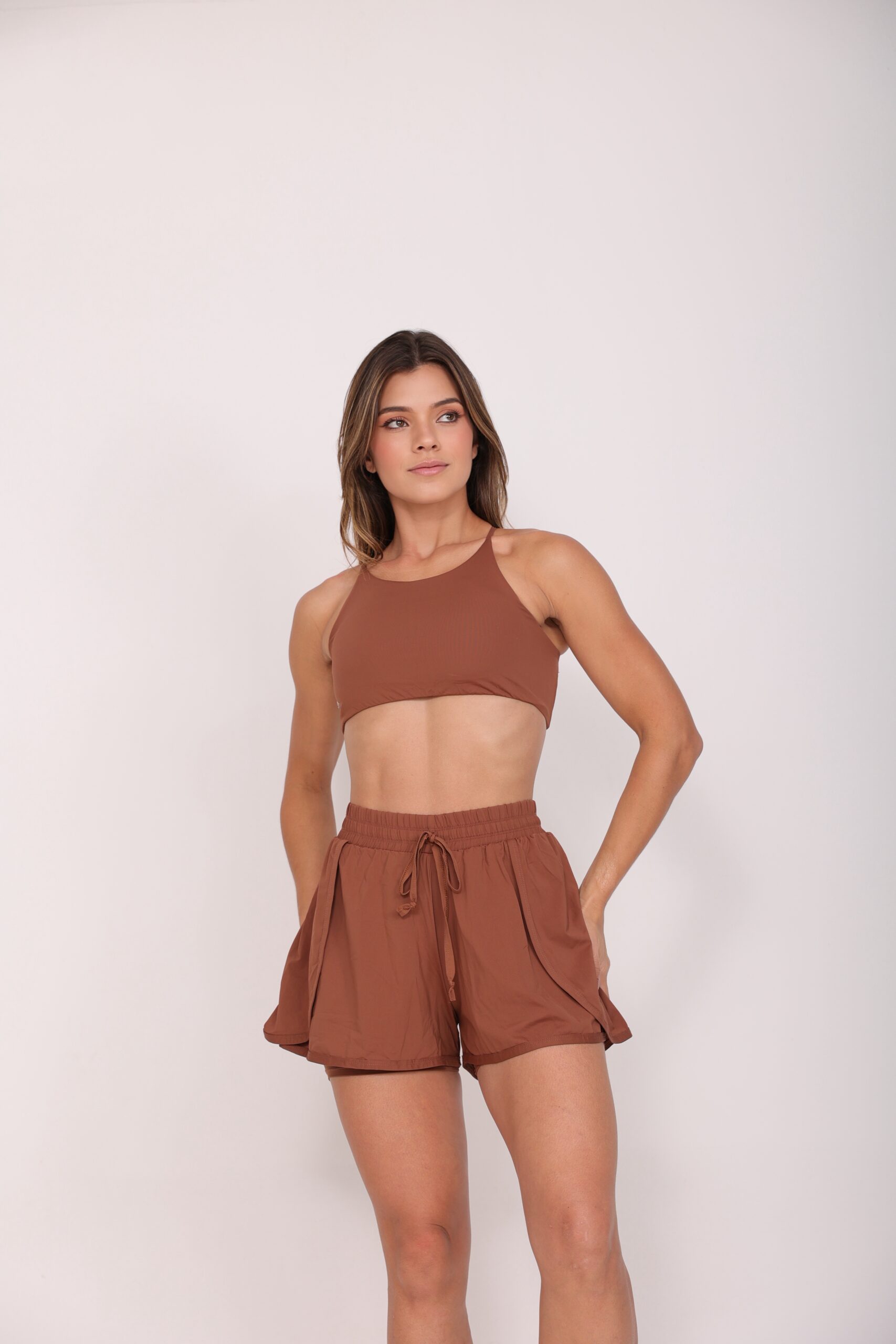 top com bojo removível e costas cruzadas + short duplo com proteção UV. Leve, confortável e zero transparência. Ideal para treinos, corrida e dia a dia